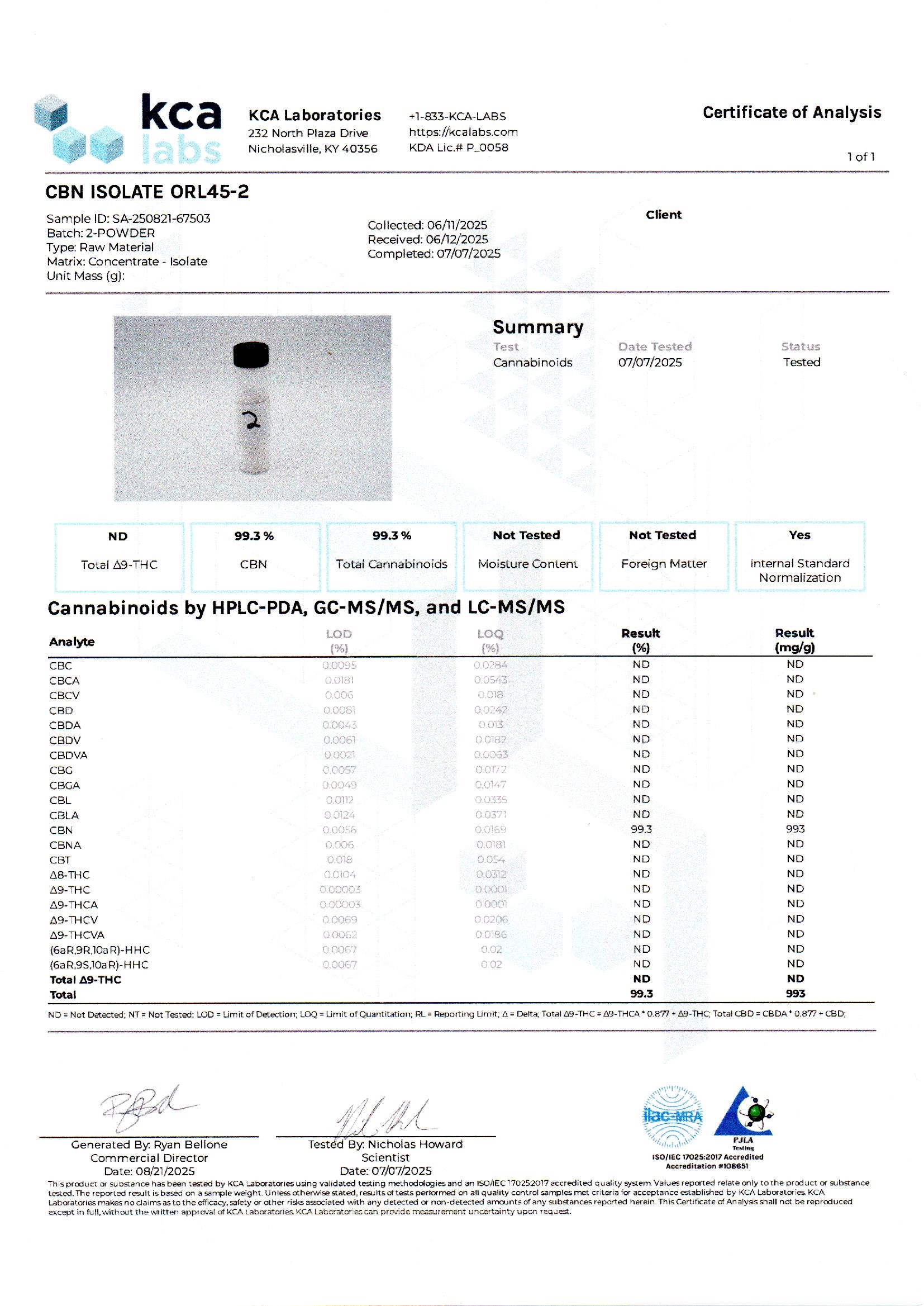 ※ 成分分析表(CoA)は商品画像P3を御参照ください。
